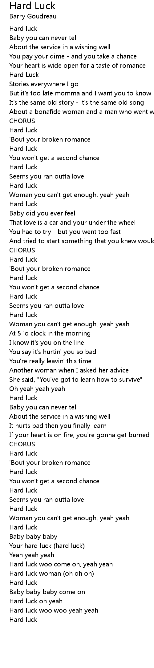 Hard luck oh yeah |