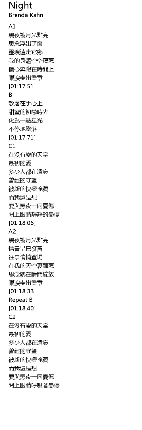 | [01:17.99] | 要與黑夜一同憂傷 |