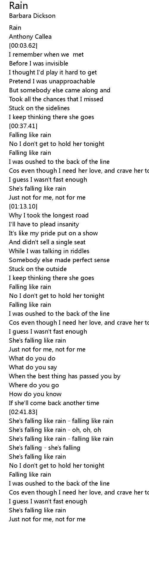 She's falling like rain - falling like rain |
