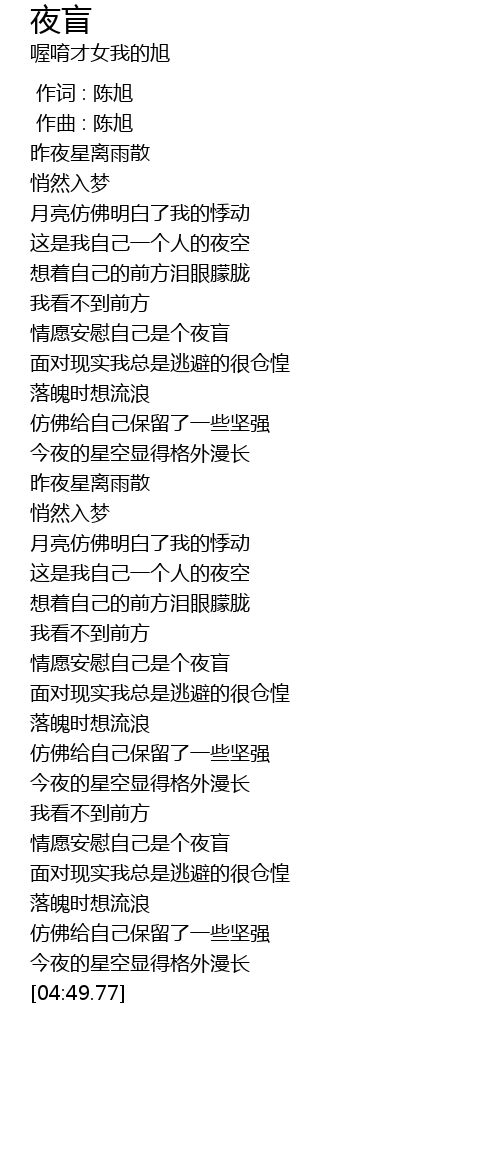 | [04:12.38] | 情愿安慰自己是个夜盲 |