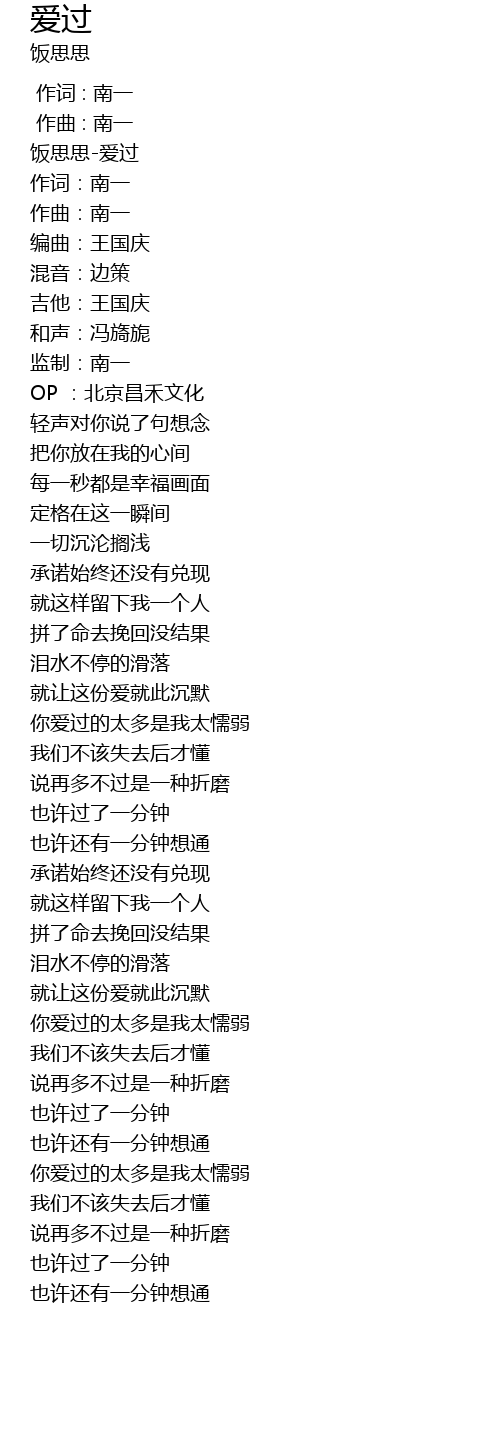 | [00:00.363] | 饭思思-爱过 |