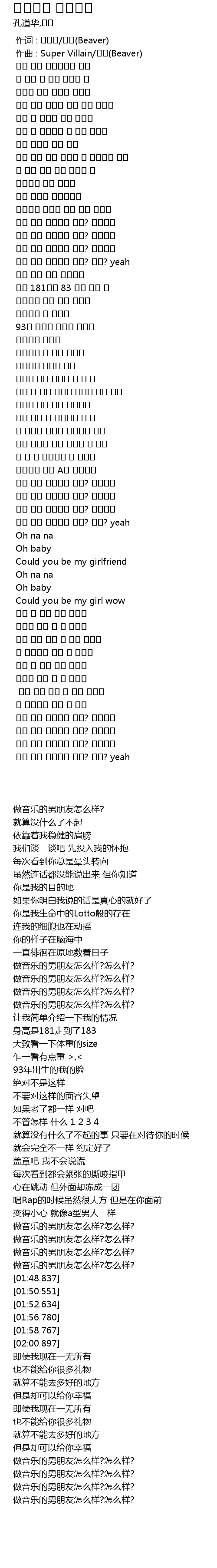 | [01:39.630] | 做音乐的男朋友怎么样?怎么样? |