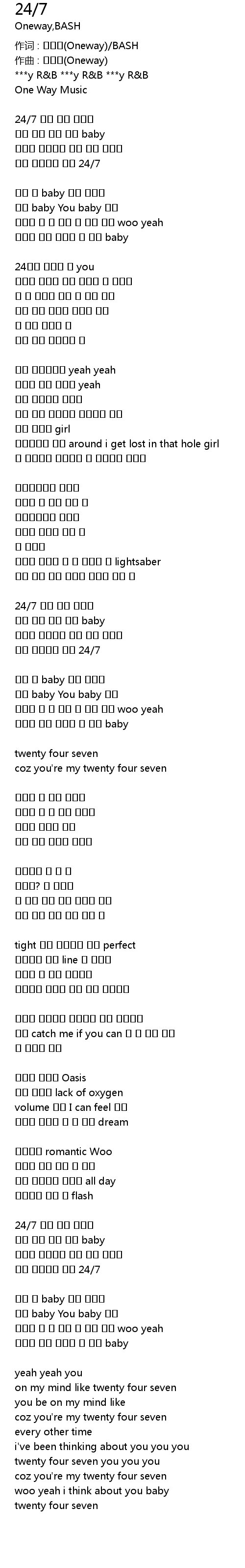 作词 : 원웨이(Oneway)/BASH |