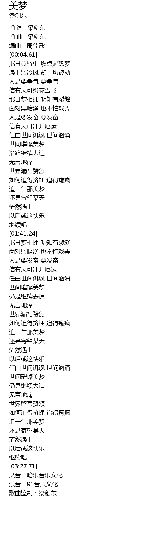 | [03:30.71] | 歌曲监制:梁剑东 |