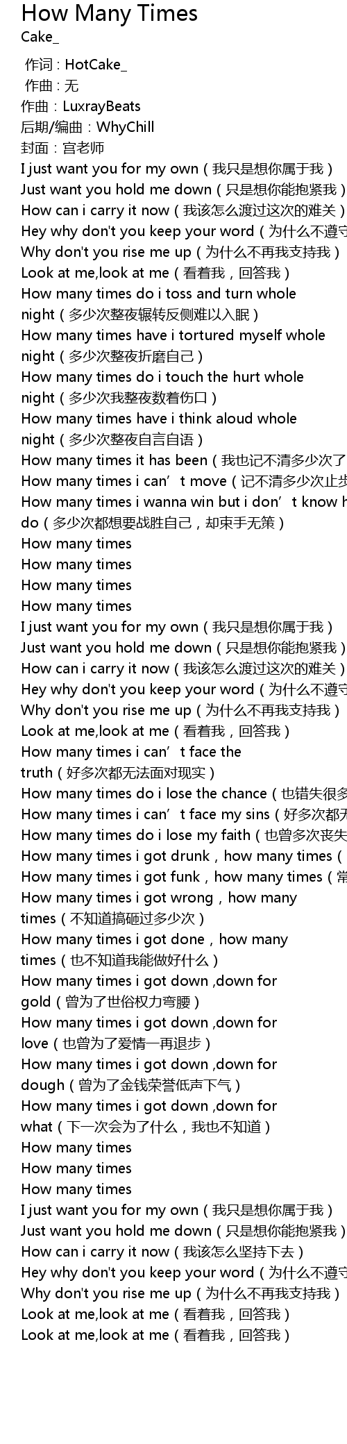 | [01:53.693] | How many times i got wrong,how many times(不知道搞砸过多少次) |