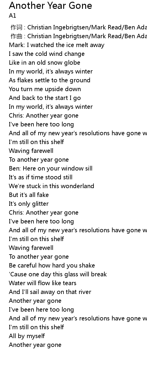| [00:00.000] | 作词 : Christian Ingebrigtsen/Mark Read/Ben Adams |