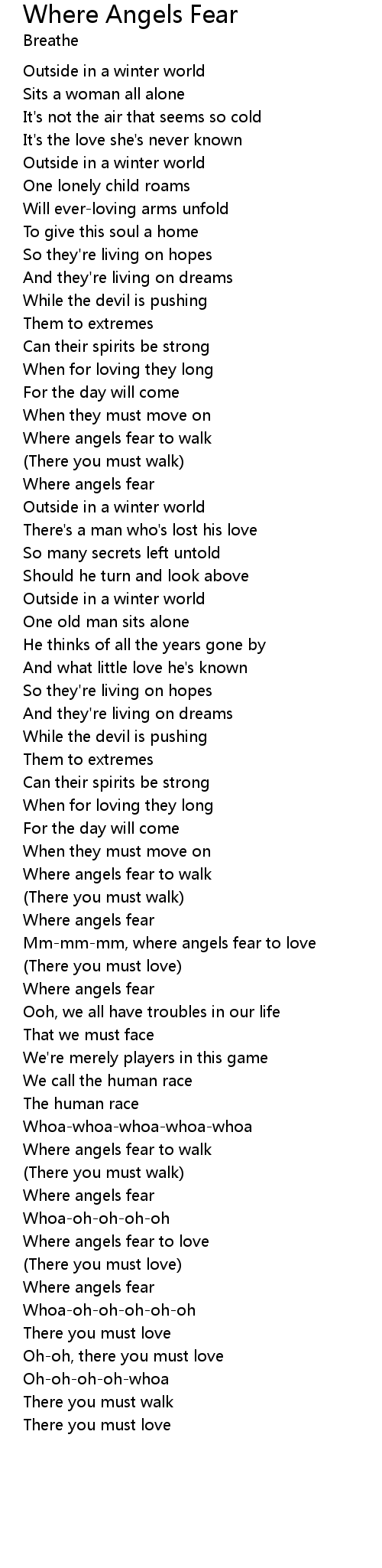 歌曲 Where Angels Fear