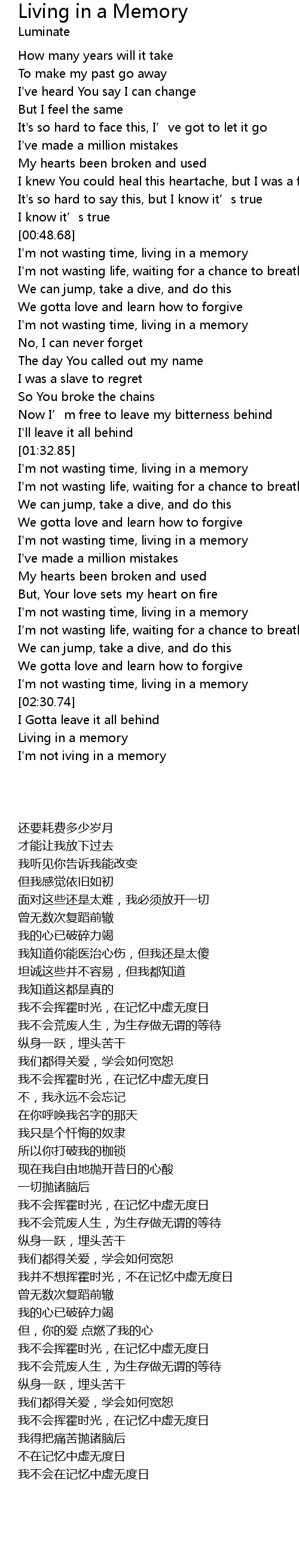 | [02:39.60] | Living in a memory |