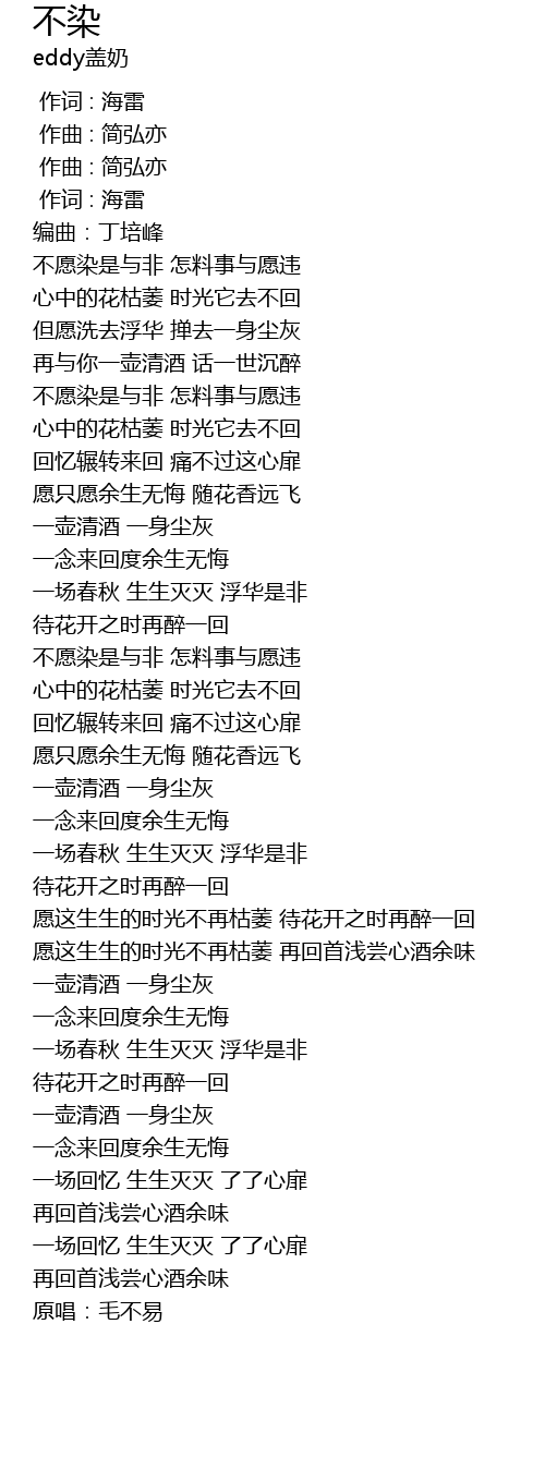 | [00:39.95] | bù yuàn rǎn shì yǔ fēi zěn liào shì yǔ yuàn wéi |