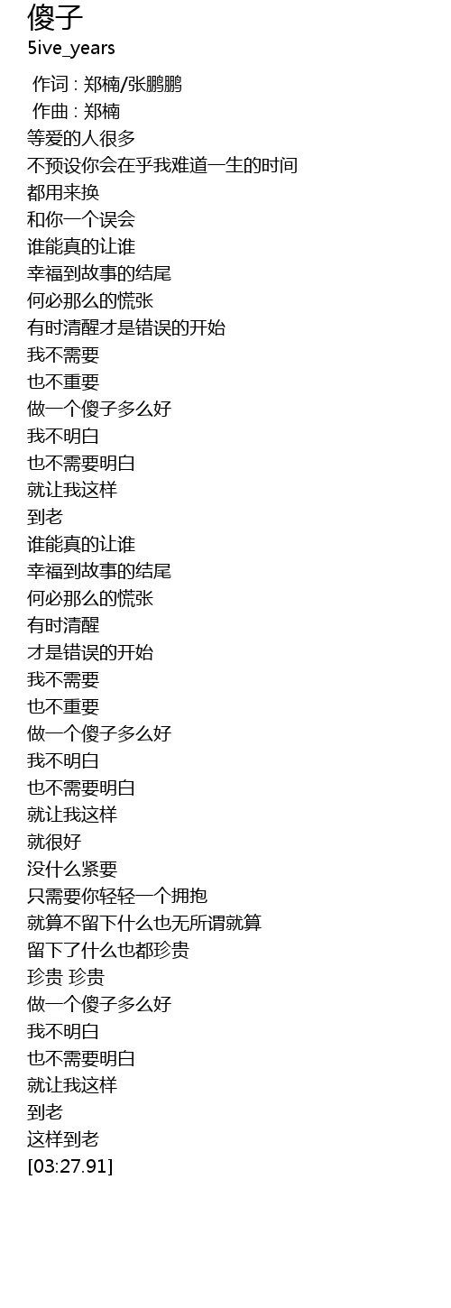 | [03:01.11] | 做一个傻子多么好 |