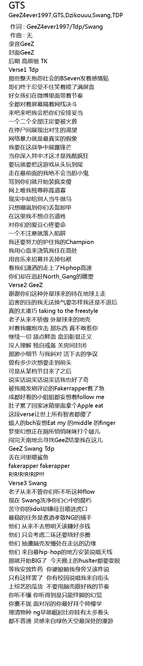 | [00:00.000] | 作词 : GeeZ4ever1997/Tdp/Swang |