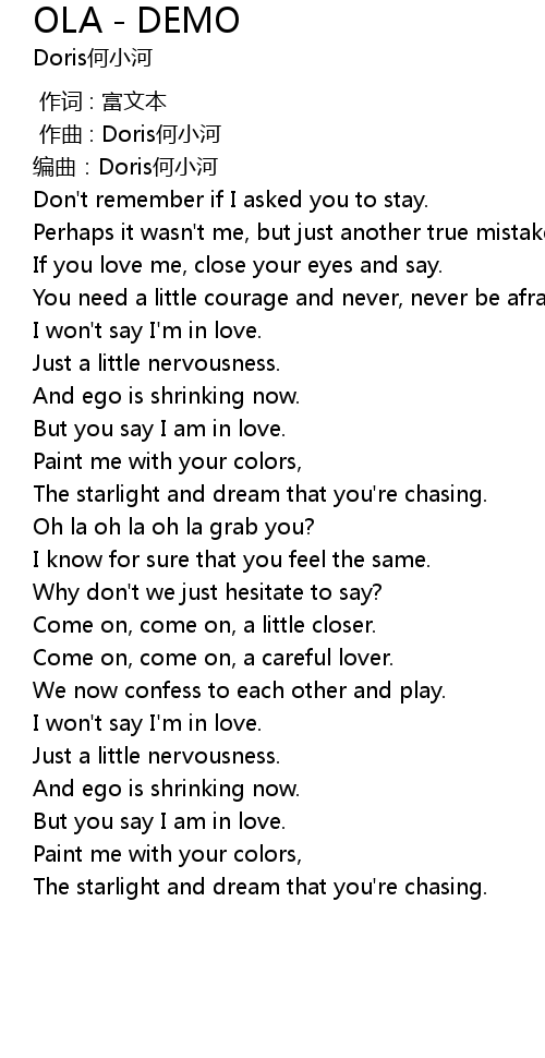 | [00:01.000] | zuo qu : Doris he xiao he |
