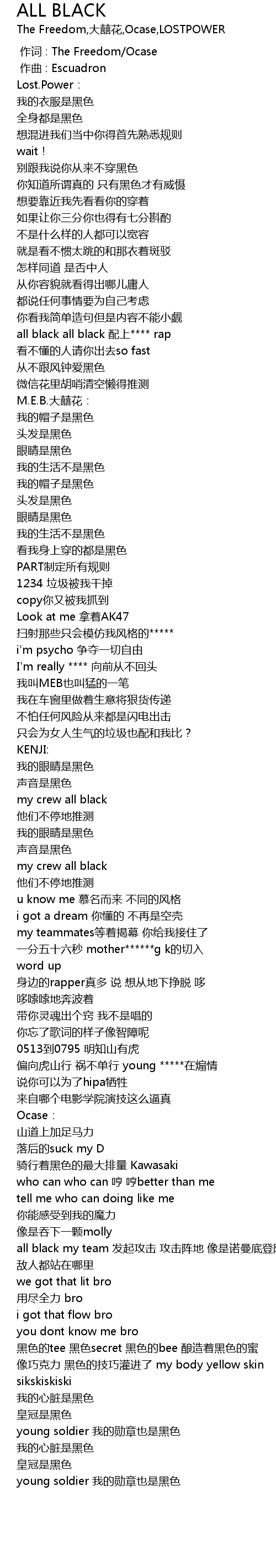 | [00:53.704] | all black all black 配上**** rap |
