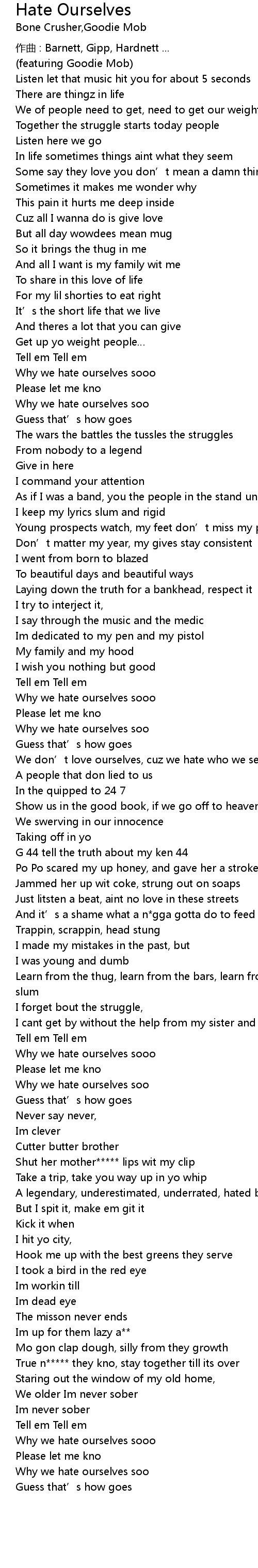 | We don’t love ourselves, cuz we hate who we see off in the mirror | |