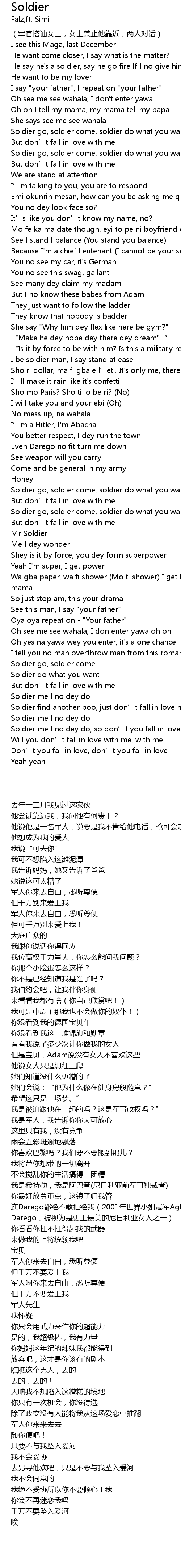 | [03:49] | Soldier find another boo, just don' t fall in love me |