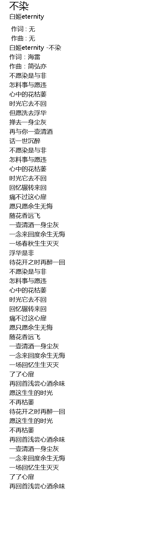 | [02:41.928] | yuàn zhǐ yuàn yú shēng wú huǐ |