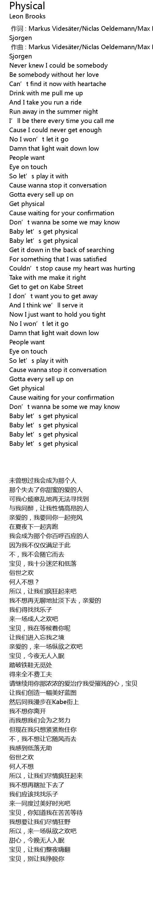 | [01:53.54] | Baby let’s get physical |