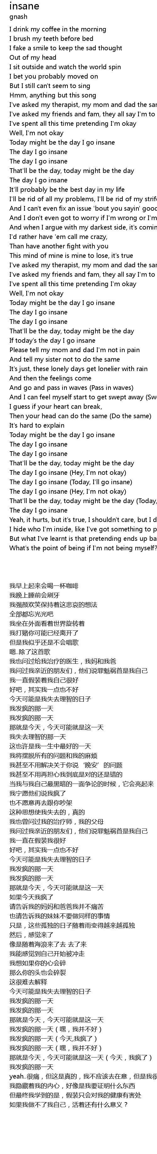 The day I go insane (Hey, I'm not okay) |