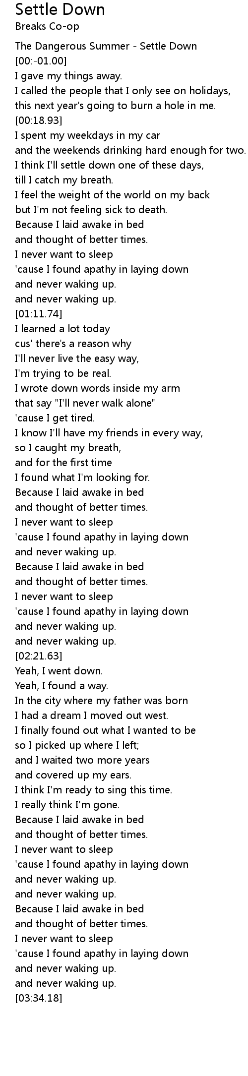 The Dangerous Summer - Settle Down |