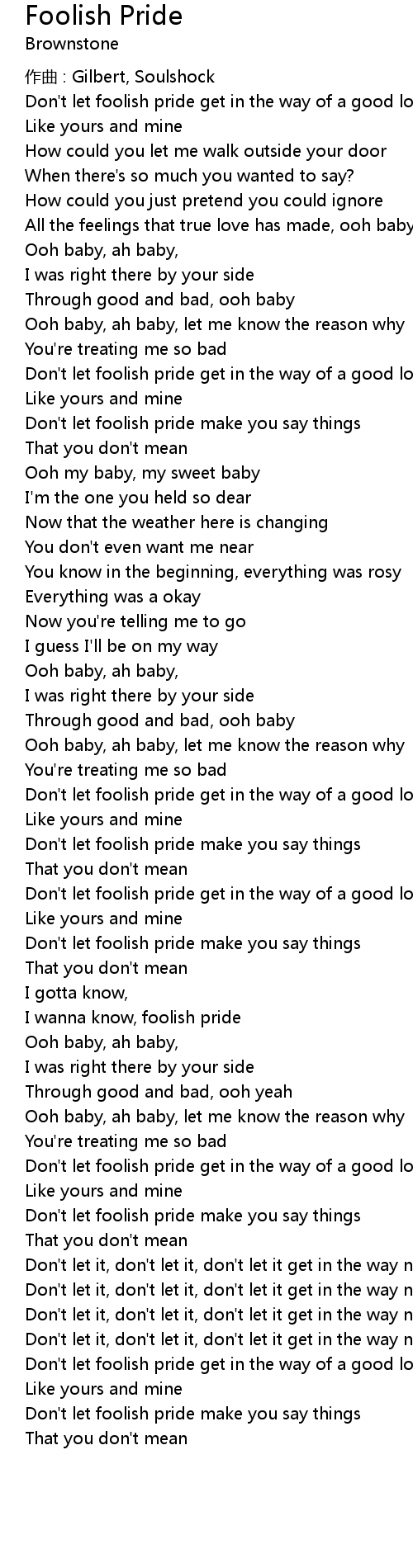| Don' t let foolish pride make you say things | |