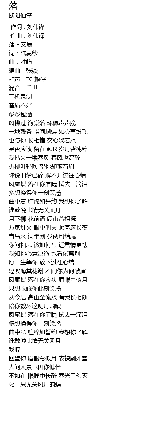 | [00:01.285] | 落 - 艾辰 |