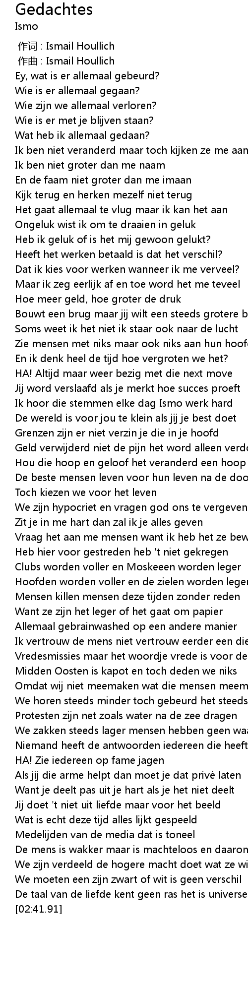 | [01:32.66] | We zijn hypocriet en vragen god ons te vergeven |