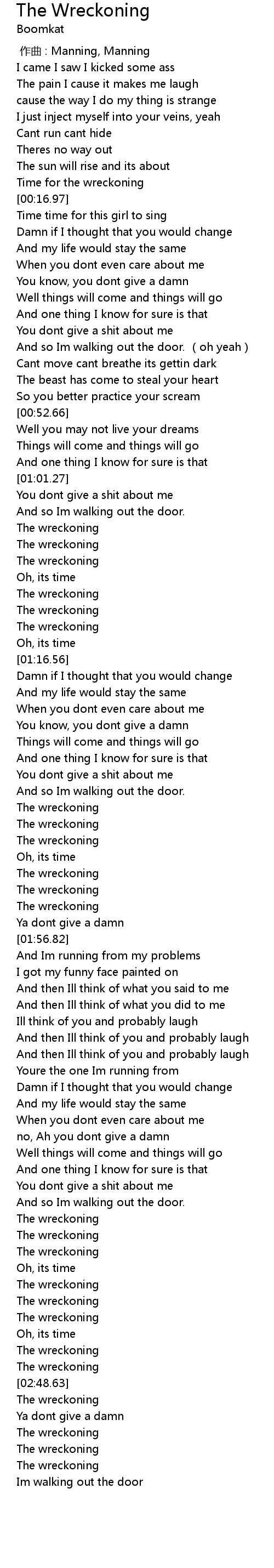 | [02:52.01] | The wreckoning |
