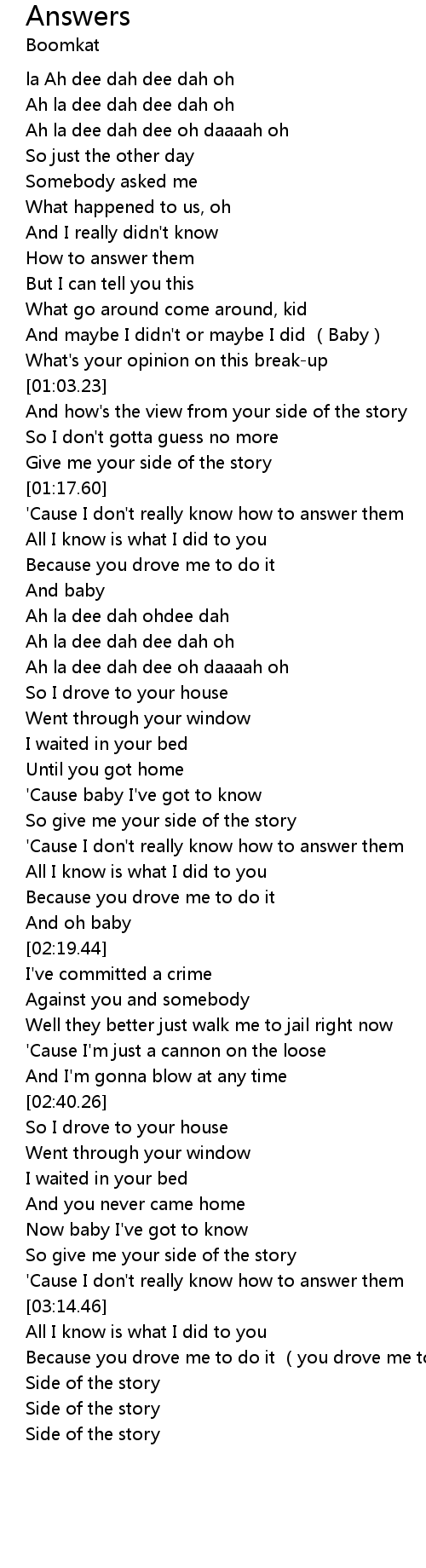 | [03:20.31] | Because you drove me to do it you drove me to do it |