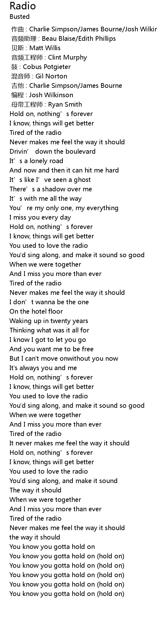 | [02:36.75] | Tired of the radio |
