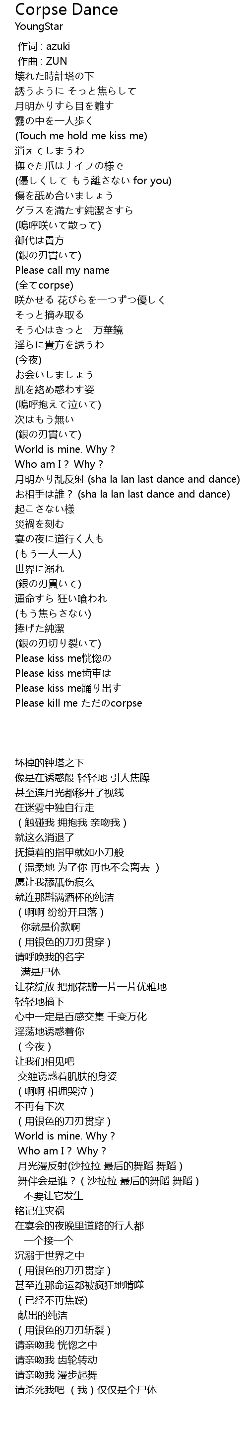 | [03:07.500] | 请杀死我吧 (我)仅仅是个尸体 |