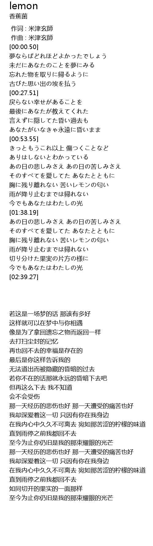 | [02:13.88] | 胸に残り離れない 苦いレモンの匂い |