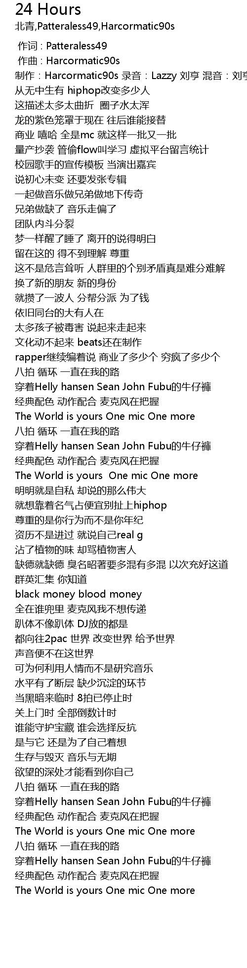 | [01:24.07] | The World is yours One mic One more |