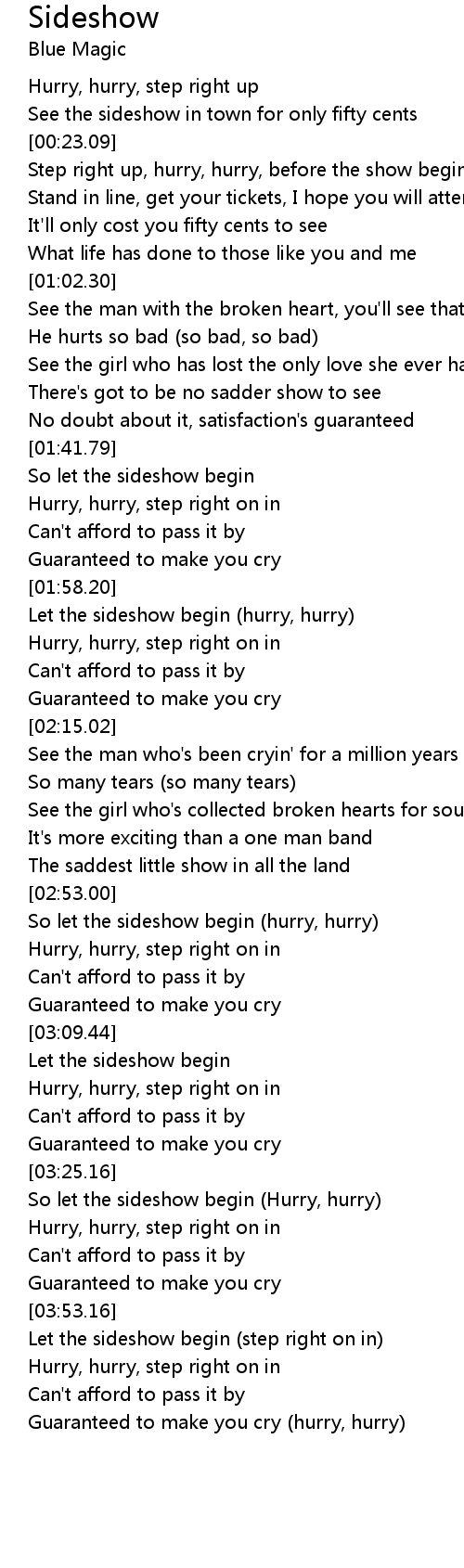 [01:58.72] Let the sideshow begin (hurry, hurry)