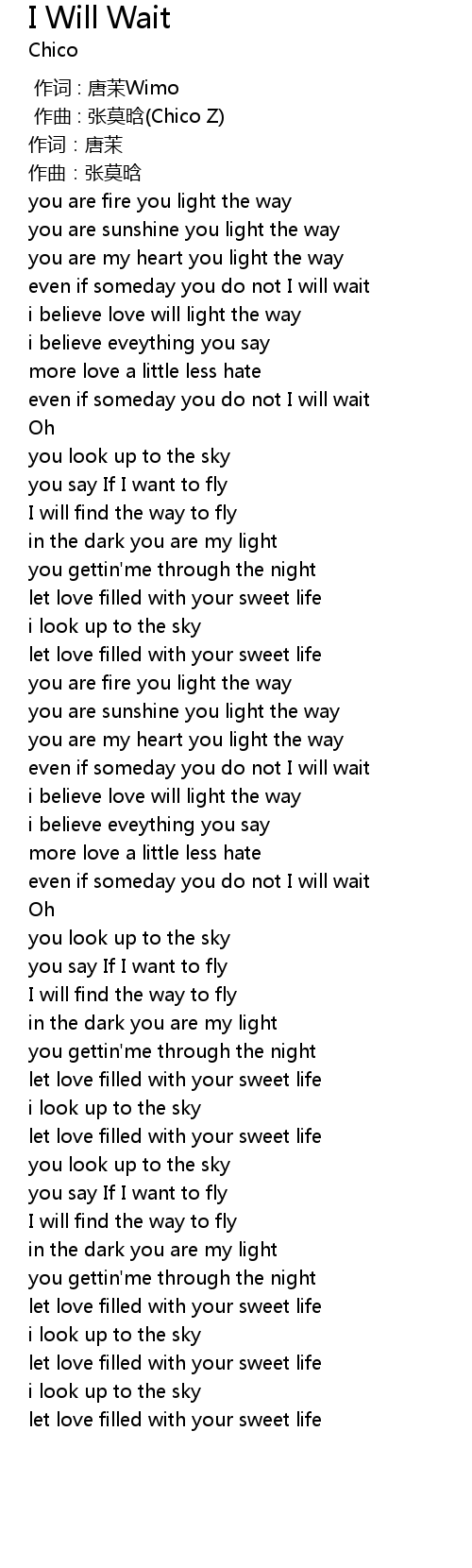 | 歌曲 | I Will Wait |