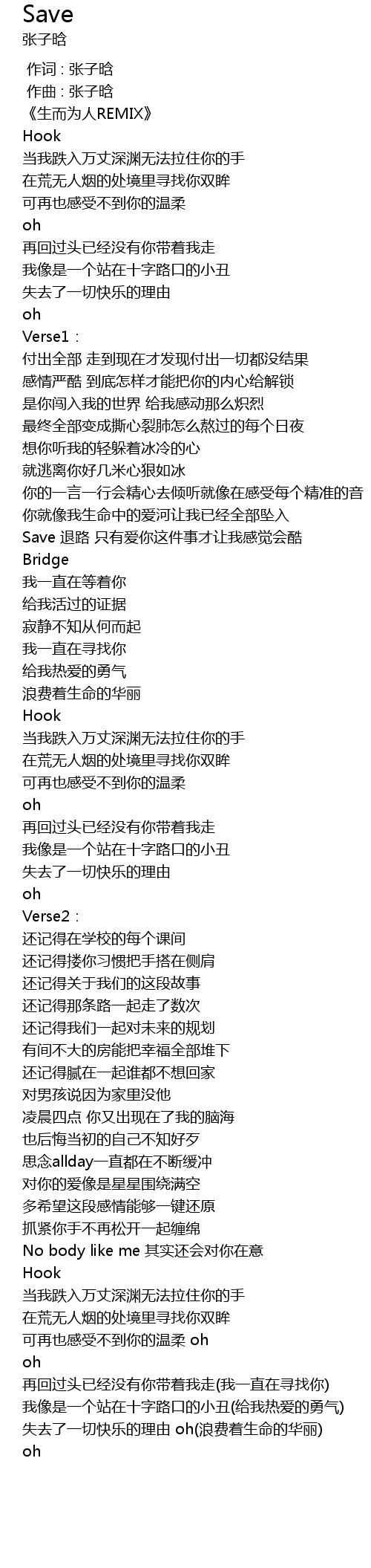 | [01:21.938] | Save tui lu zhi you ai ni zhe jian shi cai rang wo gan jue hui ku |