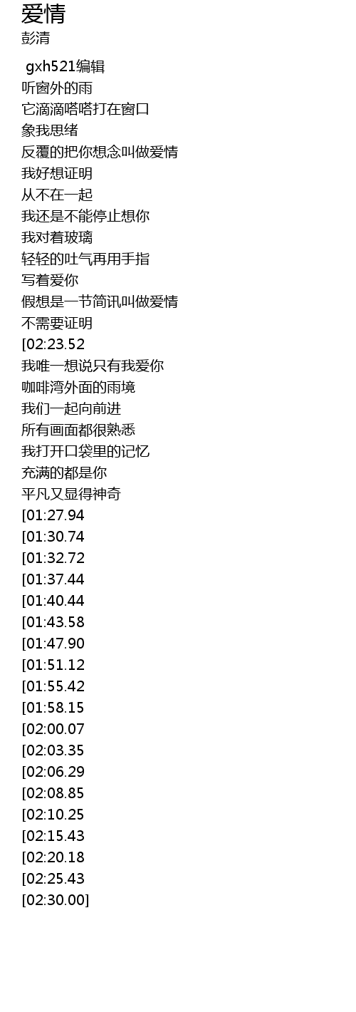 | [03:18.89][01:58.15] | pu xie ge song ai qing |