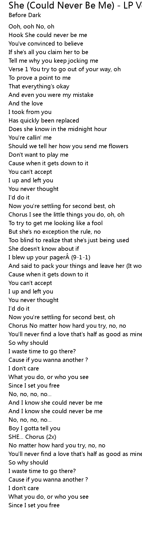 | 歌曲 | She (Could Never Be Me) - LP Version |