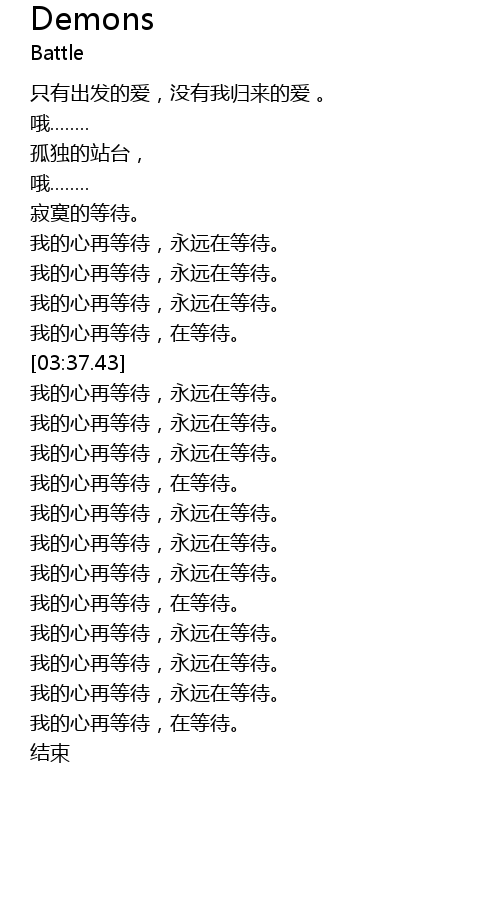 | [03:18.66] | 我的心再等待,永远在等待。 |