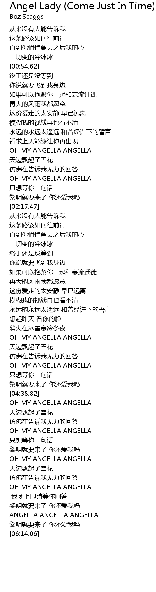| [05:17.81] | OH MY ANGELLA ANGELLA |