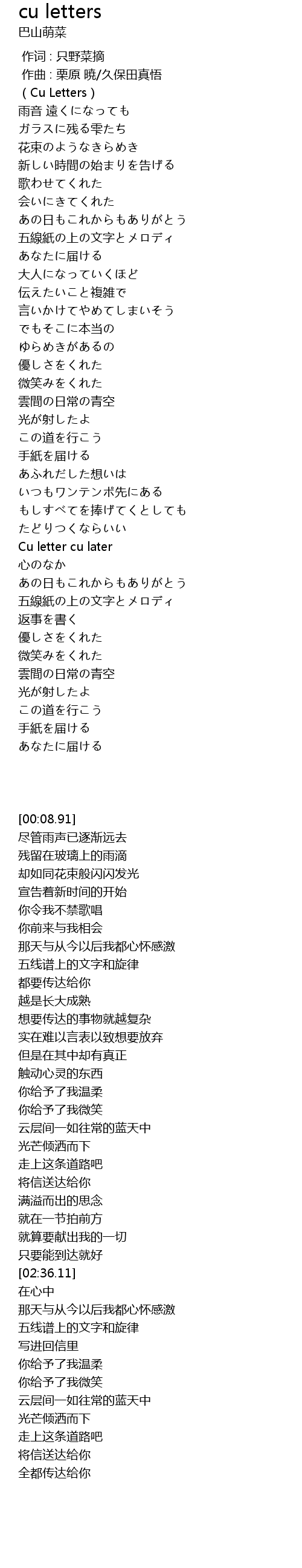| [01:56.39] | 云层间一如往常的蓝天中 |