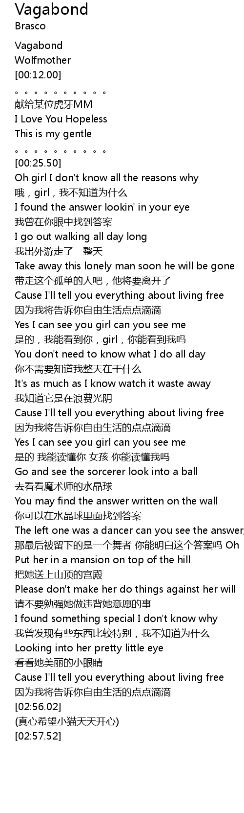 | [00:02.50] | Vagabond |
