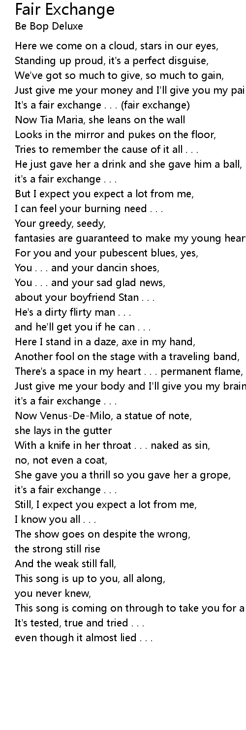 It's a fair exchange . . . (fair exchange) |