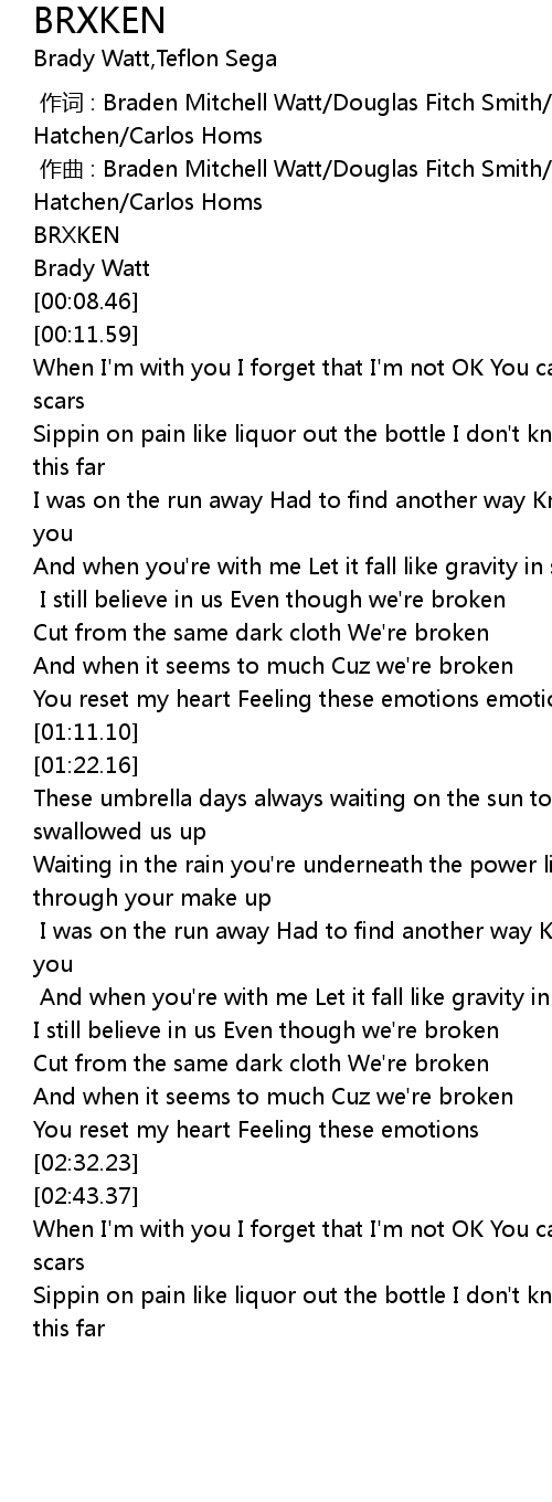 | [02:14.63] | And when it seems to much Cuz we're broken |