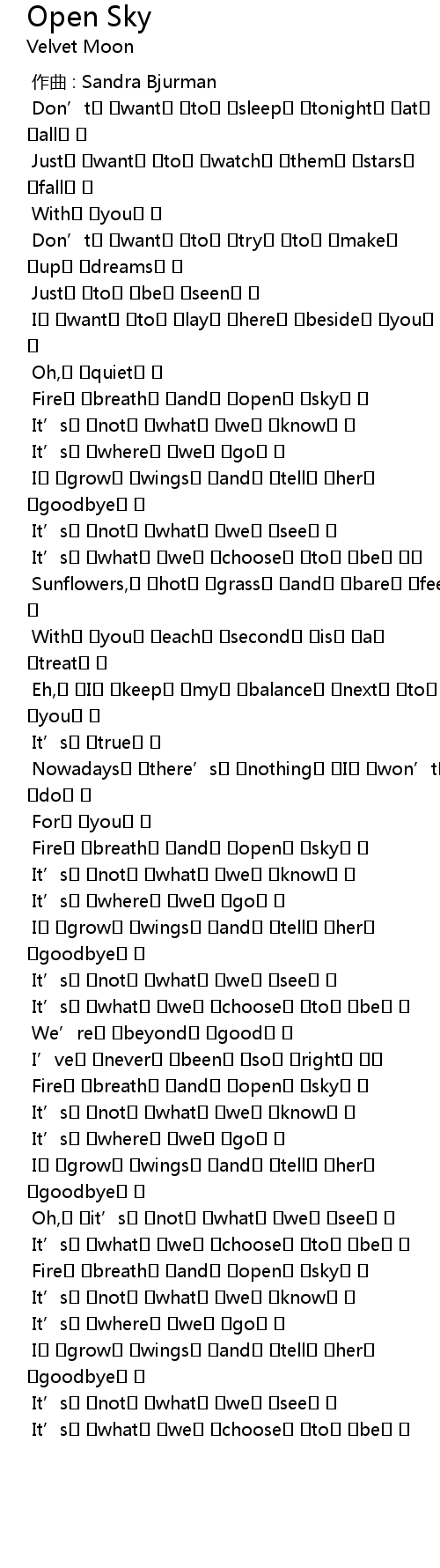 | [00:34.452] | Fire breath and open sky |