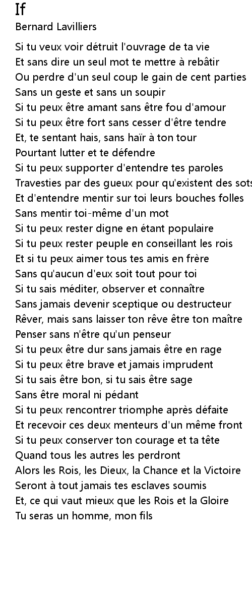 | Si tu peux tre fort sans cesser d' tre tendre | |