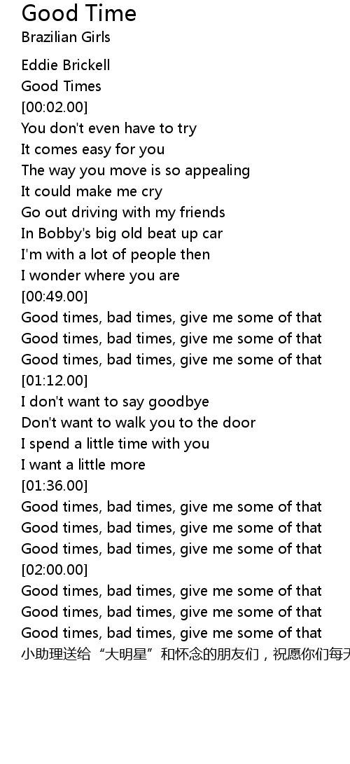 | [00:01.00] | Good Times |