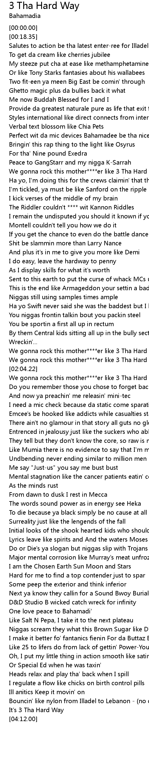 | [00:59.72] | We gonna rock this mother****er like 3 Tha Hard Way! |