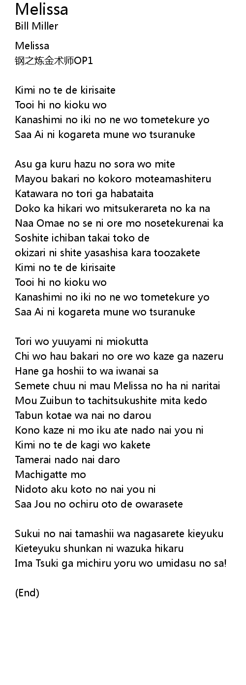 | 歌曲 | Melissa |