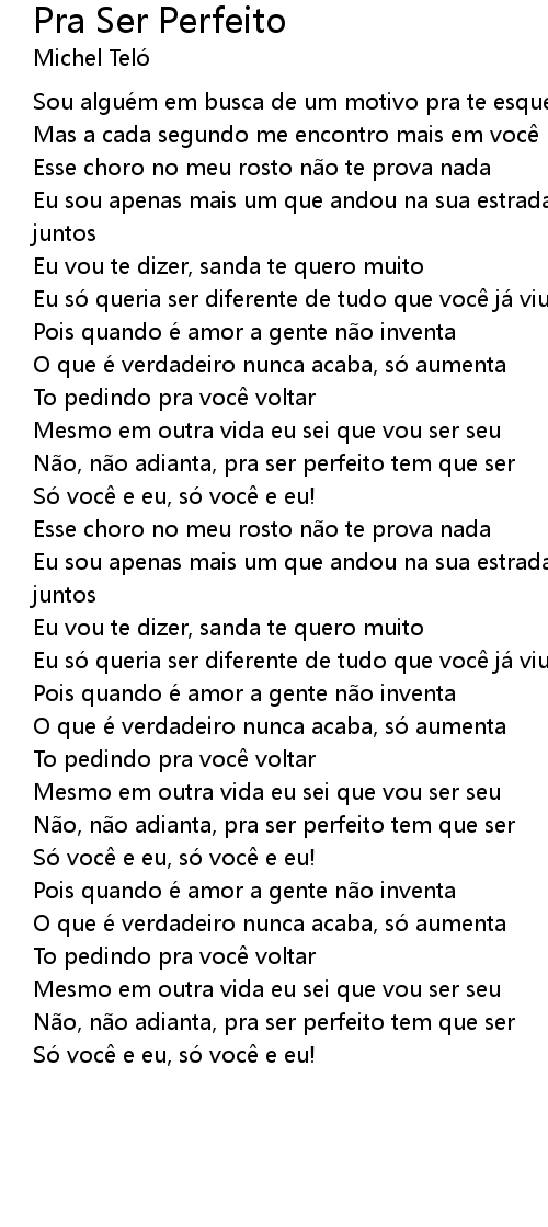 | 歌曲 | Pra Ser Perfeito |