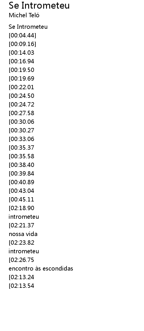 | [02:29.54][02:18.90][02:02.43][01:50.89][00:57.26][00:45.36] | Se intrometeu, se intrometeu |